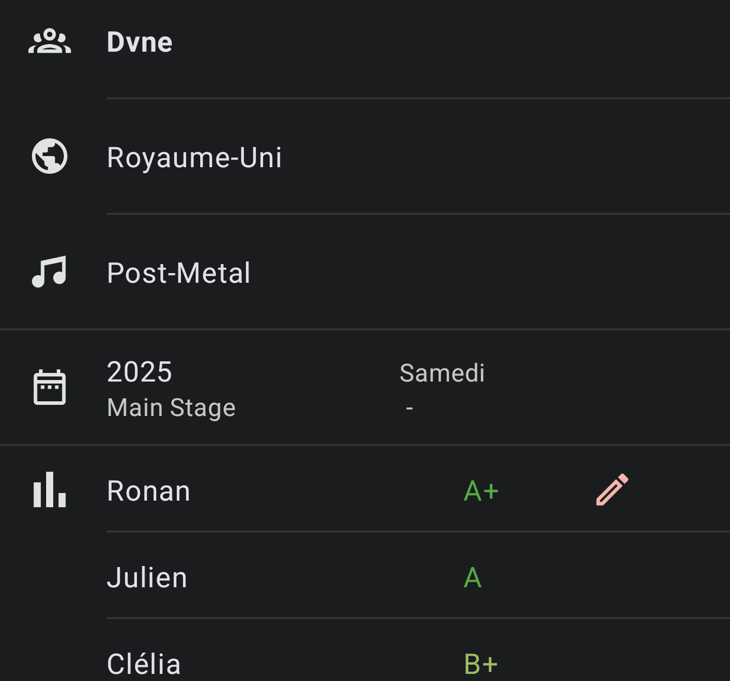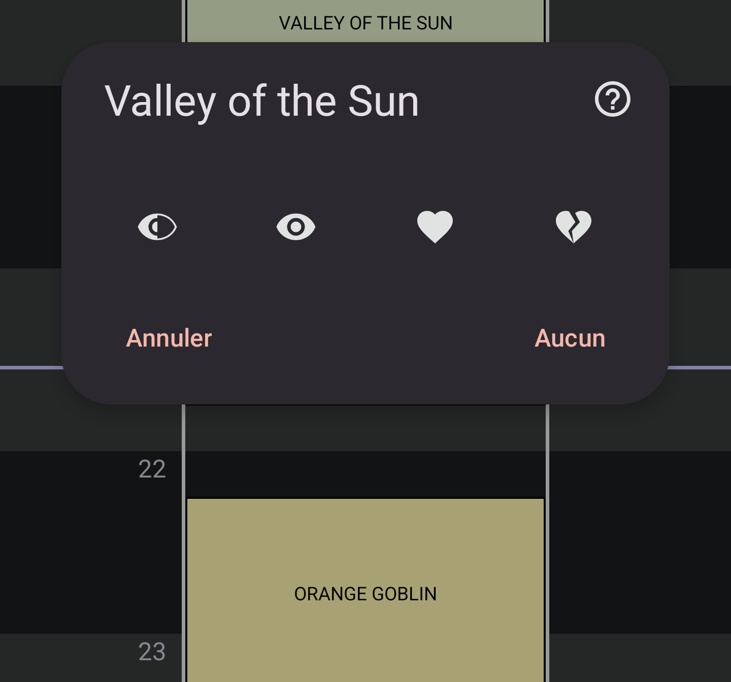 Pendant le festival, marquez les concerts vus, adorés... ou décevants.
