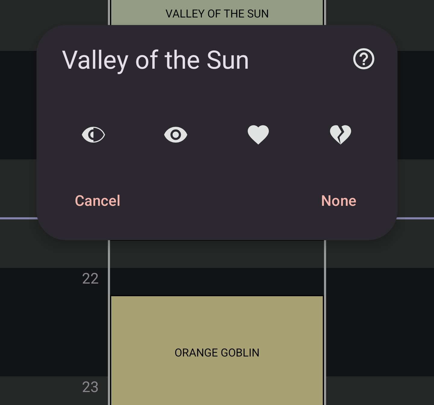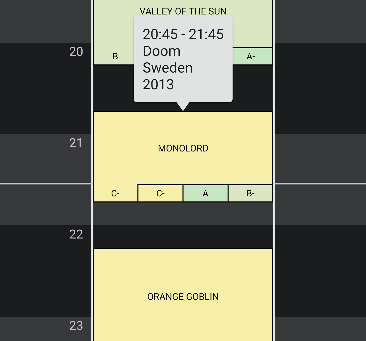 Rate the bands you want to see to get a custom running order, and share those ratings with the friends who'll be with you.